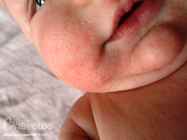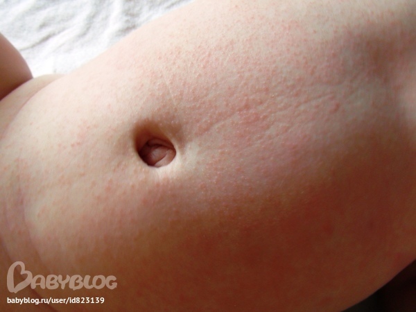 Началось у него все с головы, шея вся-вся красная, капец просто, теперь и животик, на ручках чуть-чуть совсем, пару прыщиков на ножках...