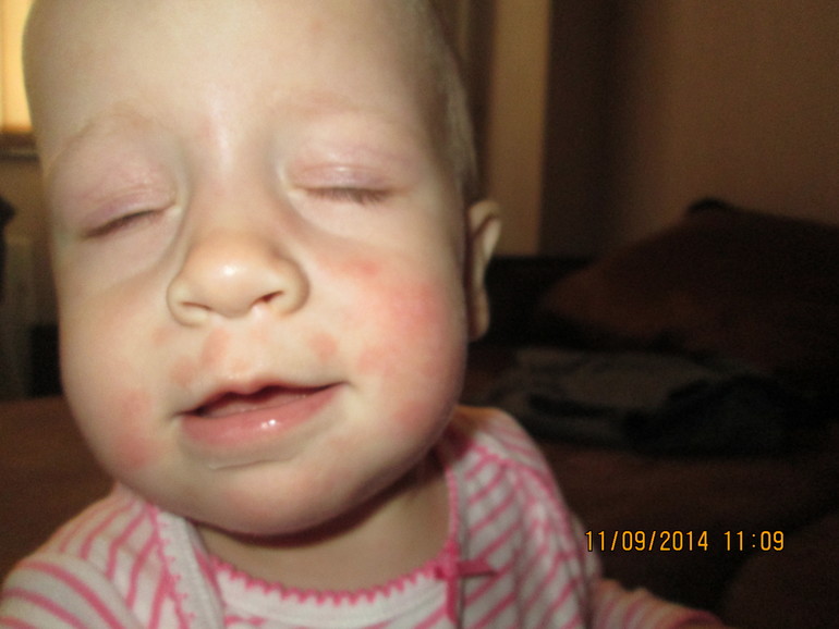 Кожные проявления АЗСегодня мы с Женькой как обычно гуляли с утра в компании еще одной мамочки с дочкой. С ними был их пес. Джек был привязан поодаль, но Женя не могла упустить такой возможности, как подойти к собаке. У нас уже был однажды контакт с собакой на улице- счастью не было придела, Женька смеялась и бегала от счастья,признаков аллергии замечено не было. Короче, подошли мы к Джеку и он нас лизнул в лицо. От чего Женя пришла в дикий восторг, а я в такой же ужас. После такой любвеобильности со стороны пса, я ее оттащила в сторону. Через несколько минут я заметила, что Женька чешет лицо, а спустя еще немного времени я в шоке увидела, что у моей пуговки пошли волдыри вокруг рта. Мы побежали домой умываться и пить супрастин. Сказать, что я испугалась, это ничего не сказать. Я все дорогу, да и сейчас корю себя: ну, вот какого хрена зачем я ее пустила к псу??? Еще я поняла, что надо постоянно быть на чеку. И пусть я буду лучше параноиком) Пришли домой, сразу сняла одежду в которой она была и сожгла постирала ее.Тем временем Женька была бодра и весела, сыпь и краснота прошли через полчаса, после приема 1/4 таблетки супрастина, ни чем не мазала. Ну, и фото крошки по приходу домой.