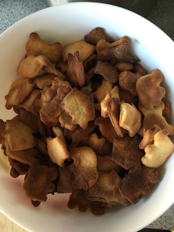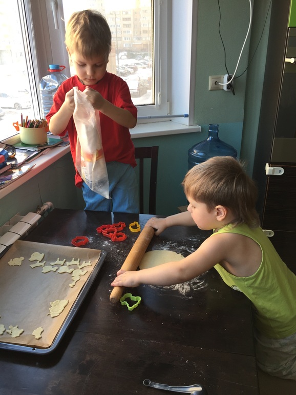 2. Разогреть духовку до 200 градусов. Тесто раскатать толщиной в 3 мм, нарезать печенье и выложить на застеленный пекарской бумагой противень. Поставить выпекаться на 10-15 минут, в зависимости от размера печенек.