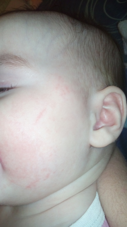 Прошу советаДевочки, очень нужен ваш совет! Напишу кратко: дочен ька с рождения на ив, аллергия вылезла в месяц, сыпь по всему телу, на простую смесь, после этого перешли на нан г/а 1. Сыпь ушла, но мелкие шершавые пятна на сгибах вылазили периодически. При этом постоянные запоры. Стул через день-это у нас норма. Наша педиатр особо не вникает в тонкости, в 6 месяцев посоветовала нам нан к/м для нормализации стула (заменить 1-2 кормления). После 2 дней от 1 кормления к/м маленькие пятна стали огромными! Срочно всё отменили. Лечили фосфалюгелем и мотилиум. Лечение назначал врач неонатолог. В 7 месяцев почти кожа полностью очистилась, перешли после этого на нан г/а 2. Неделю назад ввела прикорм-кашу гречневую, безмолочную нестле. На третий день опять стали появляться эти мелкие шершавые пятна, а на лице, к вечеру, краснеет вся щечка!