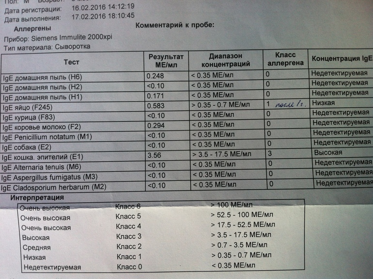 Результат IgE - 0,00 (по нулям), что удивительно и странно!!!. А на аллергены :