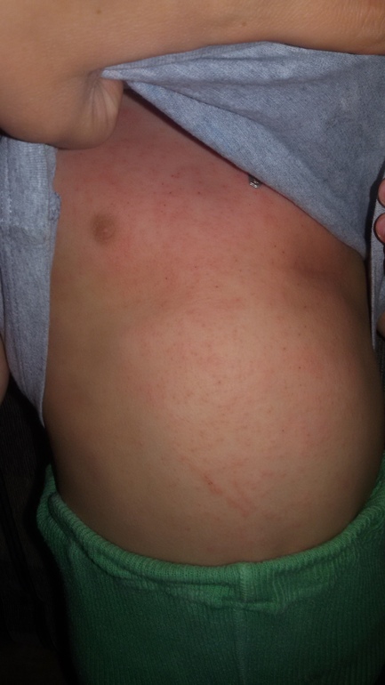 У нас так же было на спине и животе, руки, ноги были не затронуты