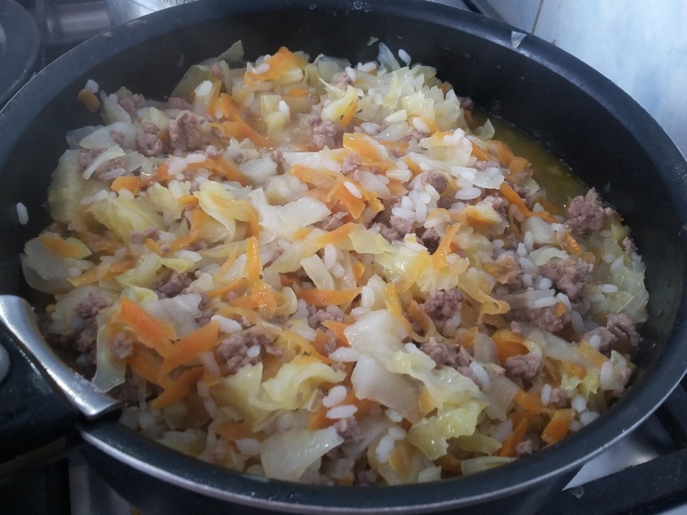 Перемешать, досолить при необходимости. Готовить до мягкости капусты: