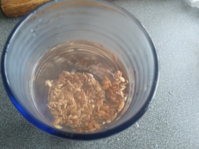 Залить 1 ст.л. семян льна 0,5 ст. кипятка. Перемешать. Остудить: