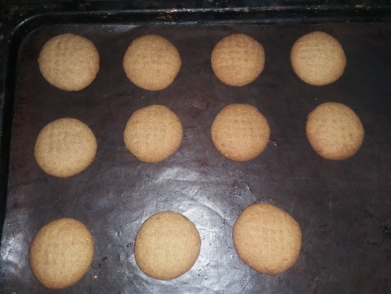 Скатать шарики, расплющить в ладонях, положить на противень. Сделать вилкой узор: