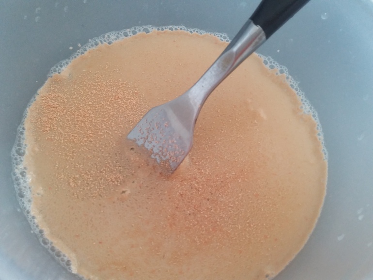 И я решила испечь оладушки. В теплой сладкой воде растворила дрожжи: