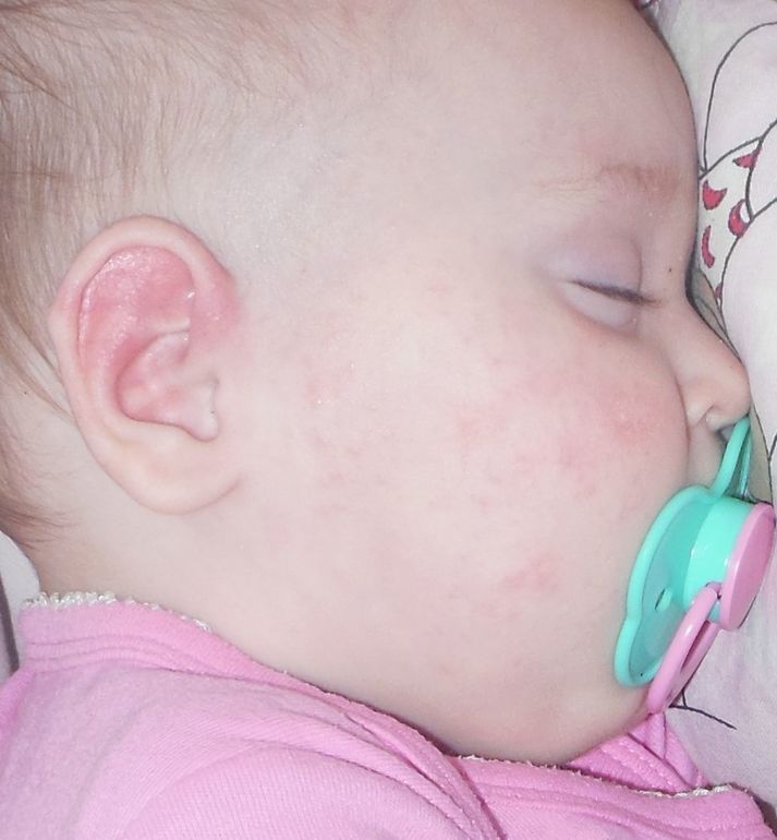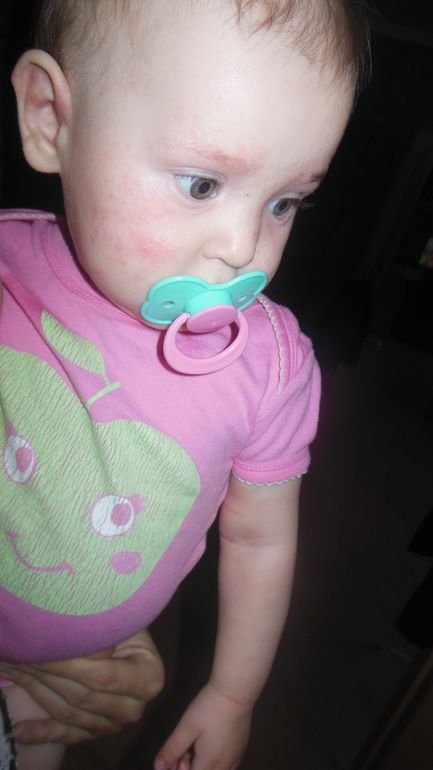 насчет уха - у ребенка нет такого. а у меня в детстве была аллергия с ушами связана - как будто внизу мочка уха отрывалась, там была трещинка, годами.