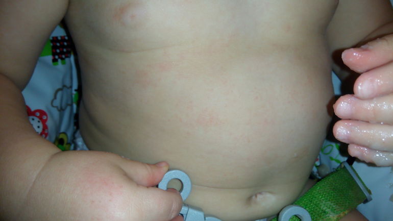 сейчас только у локтей шершавости и у соска немного сыпи, животик почти чистый, больше не краснеет