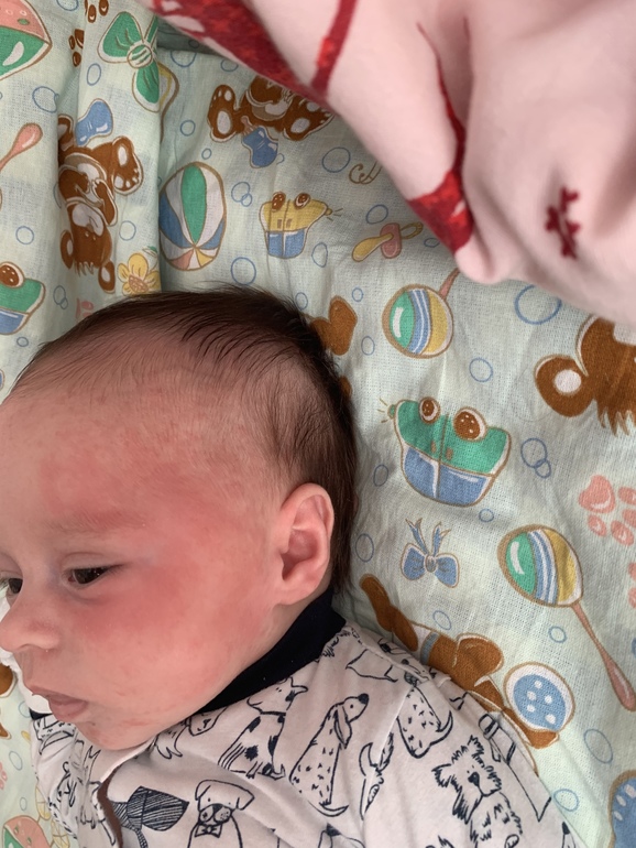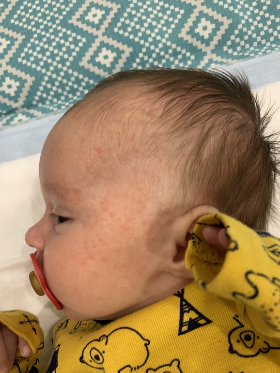 Где щека максимально красная , это сегодня ! Краснота со временем уходит в течени дня ,остаётся сыпь ! Раньше у нас был лоб чистый ! Сейчас и лоб в теме !