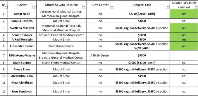 PS. Пример полного бюджета родов в Маями можно посмотреть тут (мое личное мнение – он слегка завышен, но это нам скоро предстоит проверить! :)