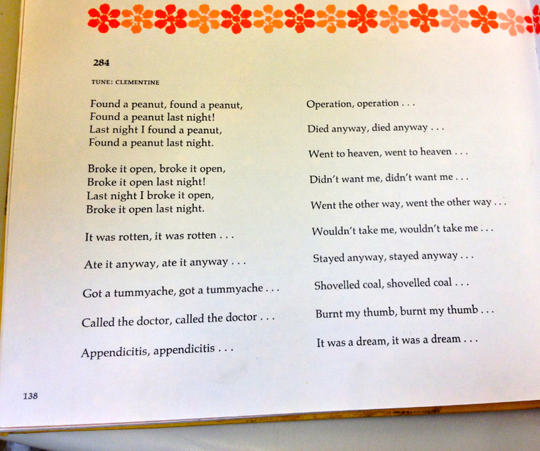 Нефигасе...Ну, если задуматься , что еще 40 лет назад физическое наказание в школе было нормой, то смысл песенок менее шокирует:-)