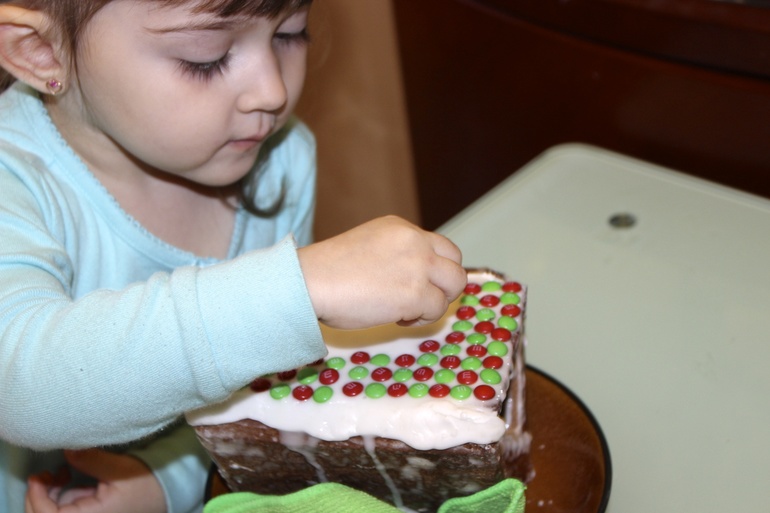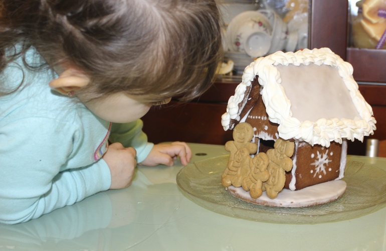 А здесь- развешиваем:A eщё мы делали пряничные домики. Оказалось трудо-времязатратнее, чем я предполагала. Столько вещей я переосмыслила, пока делала эти домики! Прозрела, можно сказать. Во-первых, глазурь нужно делать белковую, а не лимонный сок+пудра, во-вторых, клеить лучше не на глазурь, а на суровый сахарный сироп, в- третьих, для того, чтобы свеча не потухала через несколько секунд, нужно много окошек, много. Работу над ошибками буду проводить в следующем году.