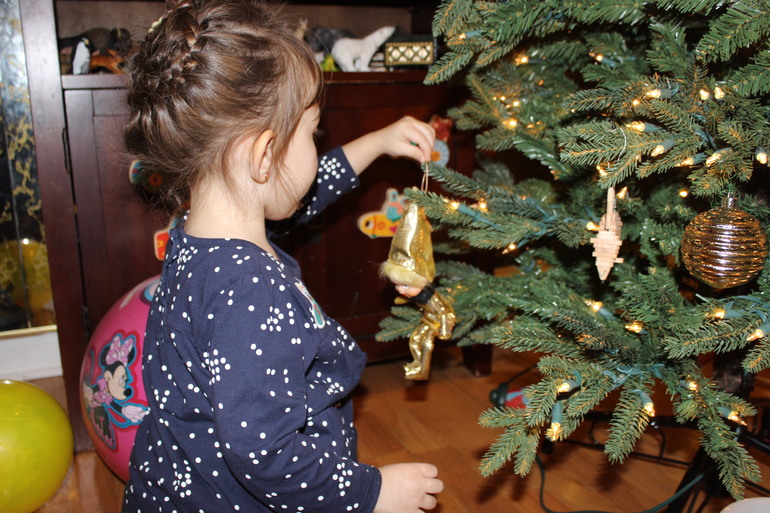 Ах, как же я забыла! 16 декабря, сразу после моих итоговых экзаменов мы украcили нашу ёлочку. Люблю её. Она реалистично пушистая, высокая, но с маленьким нижним диаметром. Уместится себе скромненько в уголок и украшает праздничный сезон. Радует моё сердце, и летом (компактно уложенная в коробку) и (особенно) зимой.