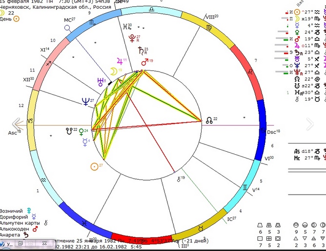 Ирина, я правильно понимаю вы родились 15.02.1982г. в 7.30 г. ЧЕРНЯХОВСК? Если так, то у вас вс карте есть трудности для зачатия и вынашивания. Следующий год для вас будет наверное самый благоприятный за последние лет 10. Вам нужно будет внимательно относиться к беременности. Обратила внимание на ваш дворец родителей, у вас либо достаточно холодные отношения с ними, либо их нет. Ещё 2016г для вас был проблемным.