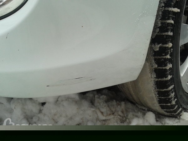после осмотра заметила на переднем бампере со стороны водителя ссадины с краской и царапости, не знаю как их описать-то