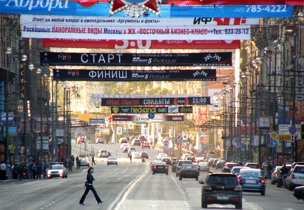 Вывески уже появились на строках, и даже весело стоять в пробках с таким оформление!