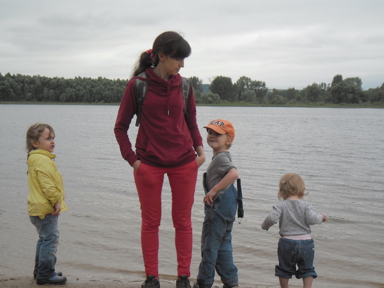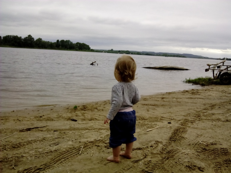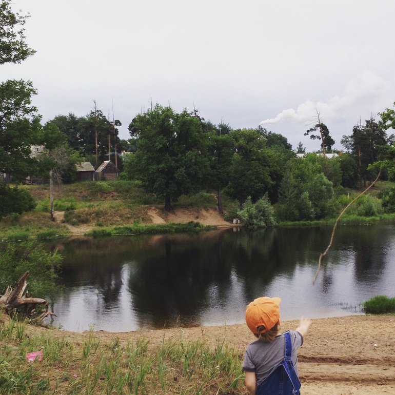 Свозили бабушку на кладбище, где ее мама с папой, погуляли по городу. Неподалеку лесок сосновый, ну и Волга конечно. И конечно мы полгорода обошли пока искали нормальный выход к воде. Нашли что-то вроде пляжа, с песочком.