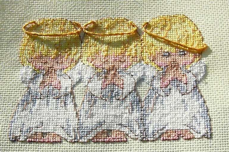 А вот этих ангелочков я вышивала на заре своей вышивальной карьеры))) И тоже подбором: