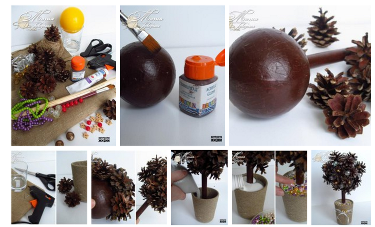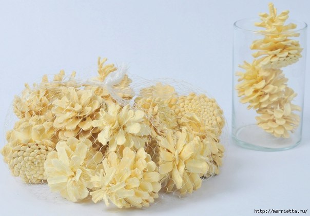 Шишки для работы можно отбелить и сделать их оригинальными. Здесь.