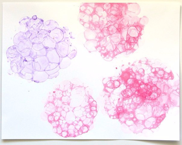 Развитие детейСмешайте вместе 1 часть краски, 1 часть средства для мытья посуды и 2 части воды. При помощи пластиковой трубочки сделайте побольше мыльных пузырей. Прислоните к пузырям бумагу, чтобы на ней получился отпечаток. Листочки дорисуйте отдельно. Черной гелиевой ручкой нарисуйте на листьях прожилки.