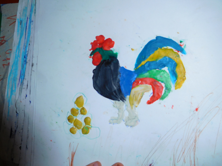 Мне такой способ пластилиновых картин очень даже нравится) мы петушку и зёрнышек набросали)