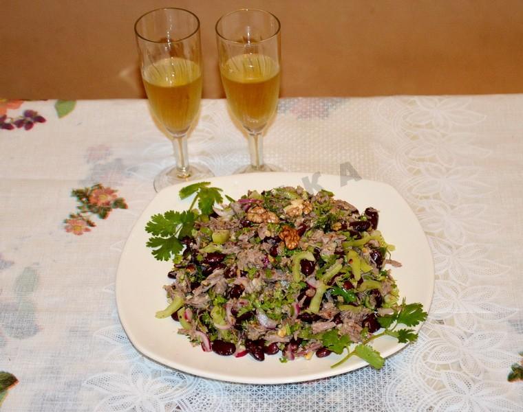 1. 200 грамм отварной говядины + 150 грамм овощного салата (совсем диетический вариант)