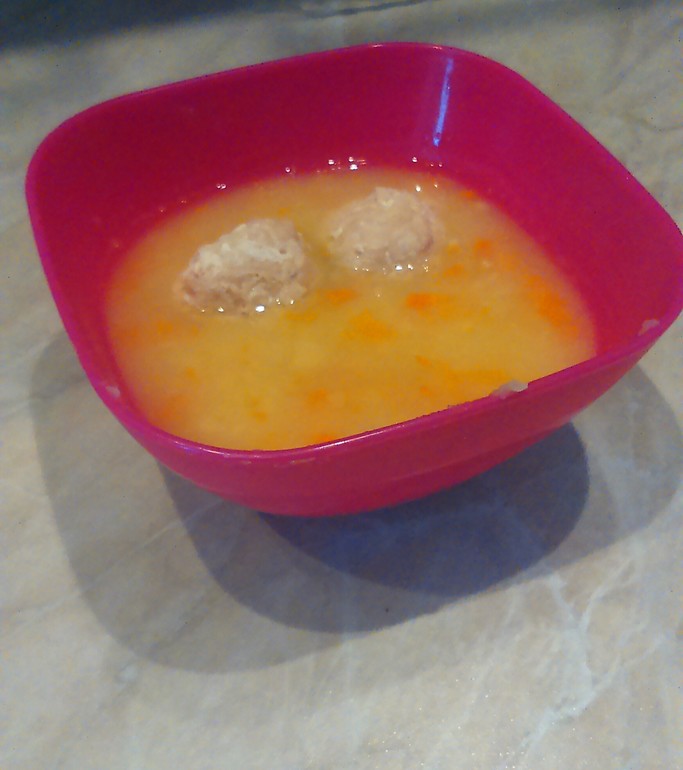 Обед: суп, 200 г. Суп недавно начала варить, до этого давала пюре овощное с мясом. Сегодня овощной суп с индейкой) Думаю хлеб ввести в рацион и давать с супом, но не знаю какой лучше белый или черный...