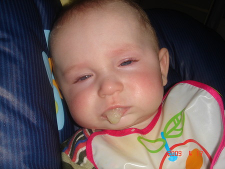 Цветную ест, брокколи вообще с удовольствием, а вот картошку никак. Говорят сначала надо овощи вводить, а потом уже фрукты, а то после вкусных фруктов пресные овощи не катят. А вот я сделала все наоборот, проблема только с картошкой)))