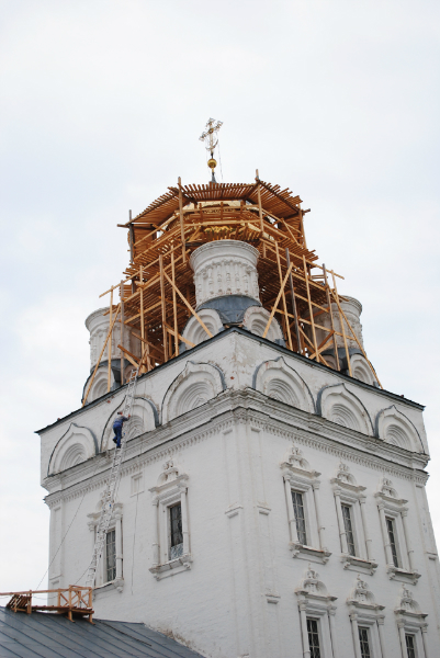 Собор сооружен в стиле московского барокко в 1696-1705 гг. Над его украшением работали мастера Оружейной палаты и знаменитые русские иконописцы Тихон Илатьев и Кирилл Уланов. В 1862-1865 гг. храм перестраивался и вновь украшался. Строительство осуществлялось под наблюдением придворного фабриканта церковной утвари Н. Д. Полтавцева и купца И. А. Кононова. 26 сентября 1865 г. храм освятил епископ Можайский Савва (Тихомиров). В 1851 г, выстроили колокольню в три яруса из красного кирпича с белокаменными деталями.