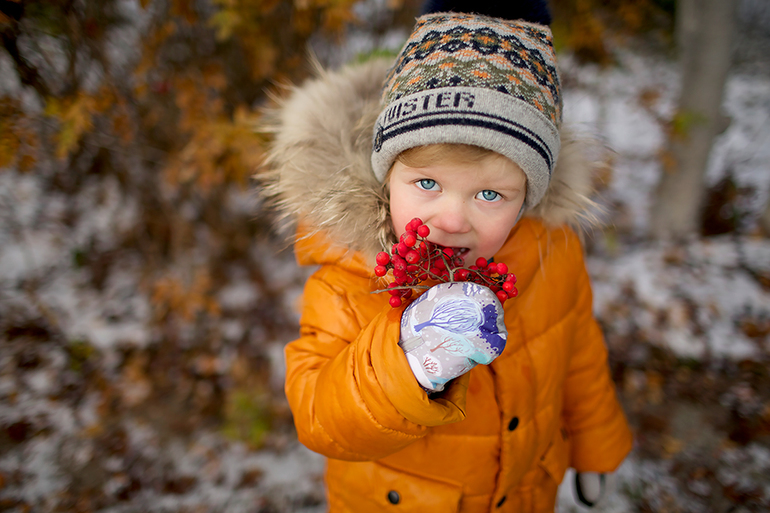 Тогда я поругаюсь немного :) первая — хорошо, выразительный взгляд в камеру, фон размыт, но я бы убрала красноту с носика и почему ребенок ест рябину? :) вторая — не нравится композиция — ребенок кричит куда- то за кадр, правая половина фото пустая и это вызывает некий дисбаланс в фотографии, третья — мне нравится, но я бы тоже убрала красноту с носика