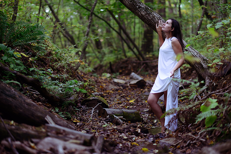 Девушка в белом "платье-разлетайке". Очень странно по мне, что оно может как-то не сочетаться с природой. Задачей создать образ нимфы не стояло. Девушка пришла на съемку в белом платье. Обычно в белом изображают нимф. И есть в ней что-то загадочное и воинственное. Отсюда и название поста ))