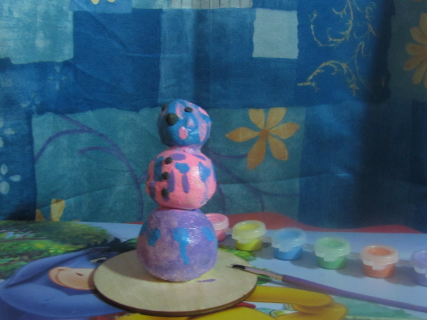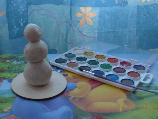 Наш снеговичок) Слепили из гиса для лепки и оставили на ночь. Покрыли акриловым лаком