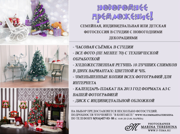 Фотосъёмка в новогодних интерьерах 30 декабря