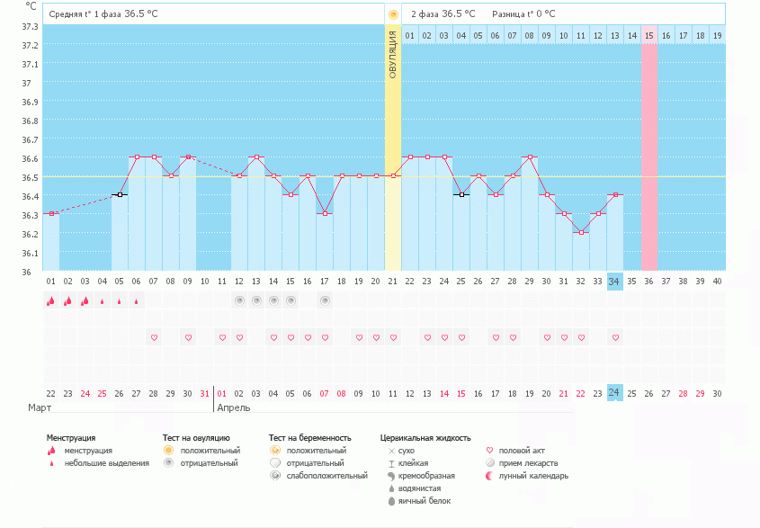 Девочки посмотрите пожалуйста мой график. Обычно у меня БТ в первой фазе 36.3 - 36.4. В этом цикле она держалась выше. О поставлена НЕ ПРАВИЛЬНО!!! Её судя по графику ещё не было. Меня смущает странное падение БТ... Плавный спад и такой же плавный подъём. На О вроде не похоже... Тогда что это? У кого нибудь такое было?