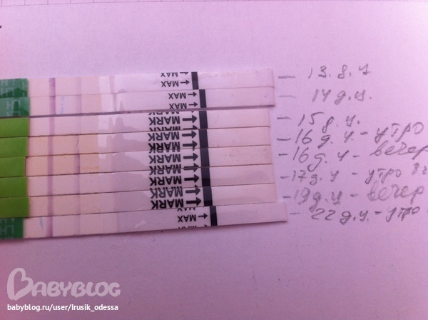Добрый день! Подскажите овуляция ли это? Первое фото это утро и вечер других дней, второе фото сегодня тест показала яркие две.