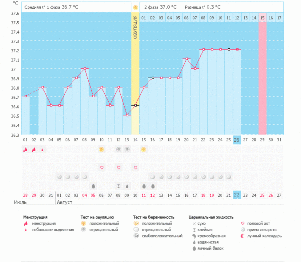 Температура тела и БТУ меня ВСЕГДА после О были боли, головакружиния, грудь просто взрывалась. А в этом цикле совершенно ничего не беспокоит. График хороший, но я ему не верю, т.к. он на дюфастоне во втором цикле. Через два дня должны начаться М. И только сегодня начала ныть поясница и яичники ((( Грудь болела всего несколько дней, сейчас даже намека нет на какие-то процессы. Еще у меня тараканы в голове по поводу ТТ (( везде пишут, да и по первой Б , что ТТ тоже должна повышаться до 37 и выше, а у меня БТ 37, 2, а ТТ 36,6 ((((