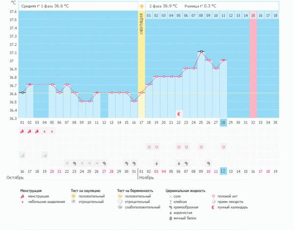 Беременность, признаки по БТ, есть ли шанс?Это первый мой график, меня напрягает что температура маленькая во 2 фазе и разница маленькая! Как думаете,есть ли шанс на Б??? Может есть девочки с похожим графикои и в итоге получилась беременность??????