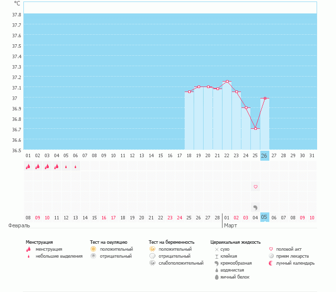 цикл 28 дней... Падение - можно обьянить - скоро М... Но скачок температуры - не могу. Посоветуйте.....