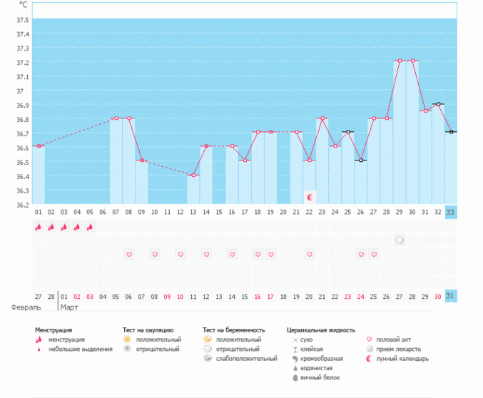 Овуляция, тесты на овуляцию и БТОбычно по графику О хорошо видно, и БТ во второй фазе 37.0-37.1, а тут вот такое... А была ли О, вообще? Тест был отрицательный, М треий день нет... есть ли надежда на беременность?