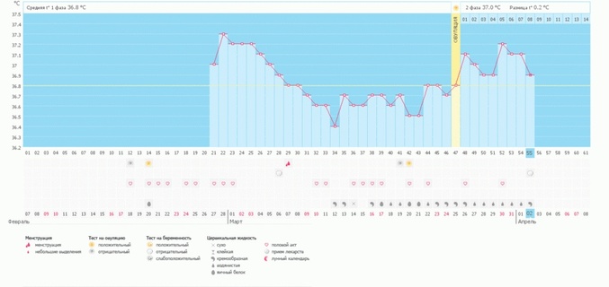Беременность, признаки по БТ, есть ли шанс?Всем привет, у меня киста яичника, пытались лечить 1,5 года противозачаточными, никакой динамики. Врачи сказали пробовать беременеть, последнюю таблетку пила 7 января 2013 г, в первый цикл не стали беременеть, эндометрий был слабым. С февраля начали пытаться, на графике полтора цикла изображено. Цикл 28 дней, приходит день в день за редким исключением. С таким графиком есть ли шанс что беременны? Читала все что здесь пишут, надежда есть, очень хотим малыша. Заранее спасибо
