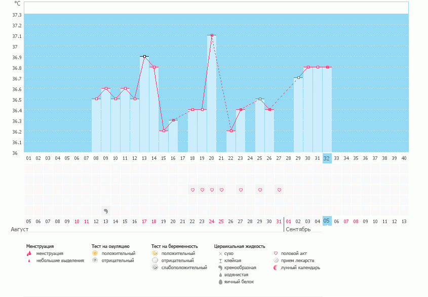 Не знаю с чем связаны такие скачки в 1-й фазе (хотя перед одним из скачков употребляла алкоголь, может он из-за этого?) . А вот сейчас БТ повысилась и пока держится 36,8 :))))) могла ли быть овуляция? а то переживаю...цикл странный какой-то