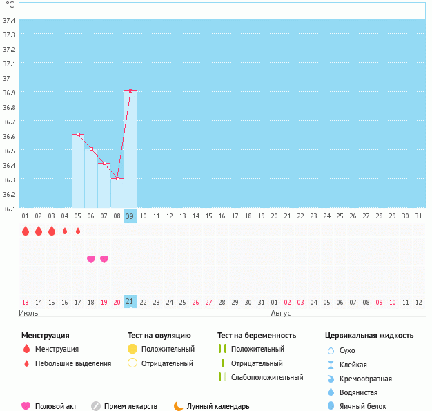 Вопросы и проблемы в ПЕРВОЙ фазеДевочки, первый раз у меня такое....почему так БТ резко поднялась???? до О еще рано, цикл у меня всегда 30 дней, не болею...почему так подскажите, а то я начала переживать...
