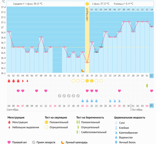 Мой график базальной t°, цикл от 19 сентября 2014 Мой график базальной t°, цикл от 18 сентября 2014