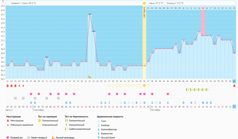 Беременность, признаки по БТ, есть ли шанс?Девочки, может быть кому-то когда-нибудь пригодится. Выкладываю график при БХБ, подтвержденной анализами. Вот такой вот красивый график, с овуляцией на 36 дц и с четким ИЗ на 9 ДПО, которое я даже почувствовала (ощущение камушка в животе). Тесты после 16 ДПО перестала делать, чтобы себя не тревожить (ярчали очень плохо, но полоска была отчетливая). Из признаков Б была жуткая вялость, очень плохой сон с 9 ДПО, где-то на 12 ДПО четко почувствовала металлический привкус во рту. Грудь вела себя не совсем обычно - всегда болит перед М, тут нет, заболела только после задержки, не горела, не болела под мышками. ТТ постоянно держалась 37,1-37,3, я ее ощущала, но не так как при простуде.
