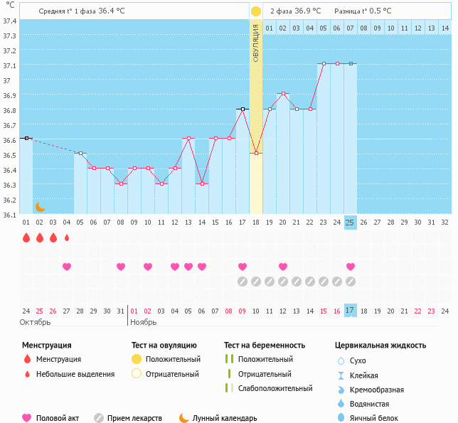 Девочки, как думаете, когда была овуляция? Сам график ставит 14(22дц), если не учитываю БТ 9(17дц), то О 10(18дц), еще пробовала не учитывать 5(13дц), тогда программа ставит О на 6(14дц). В общем совсем запуталась, обычно цикл 27-29 дней, поэтому О на 22 дц вроде как слишком. Ёще БТ впервые, за последние пол года выросла до 37,1(первый цикл на утрике, до этого пила дюфастон - выше 36,9 не поднималась).