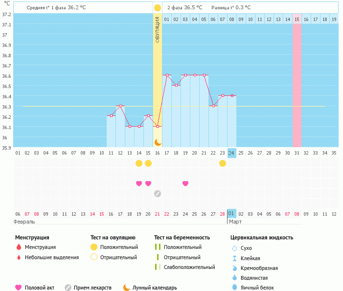 Мой график базальной t°, цикл от 6 февраля 2015
