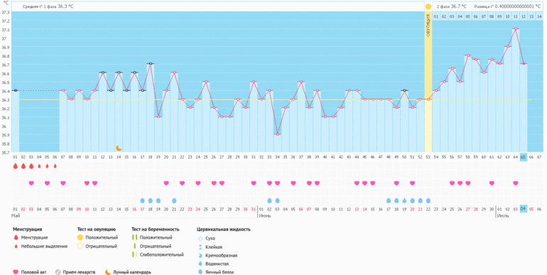 Беременность, признаки по БТ, есть ли шанс?Этой ночью было невыносимо жарко, дык, мы живём в Узбекистане и это норма, когда посреди ночи температура в среднем 35 -36 градусов. Я это к чему?! К тому, что могло ли это повлиять на БТ, т.е. на её повышение? Хотя температура тела была 36.4... А мне казалось, что я нагрелась до 37, если не больше!!! В общем, оцените мой график.