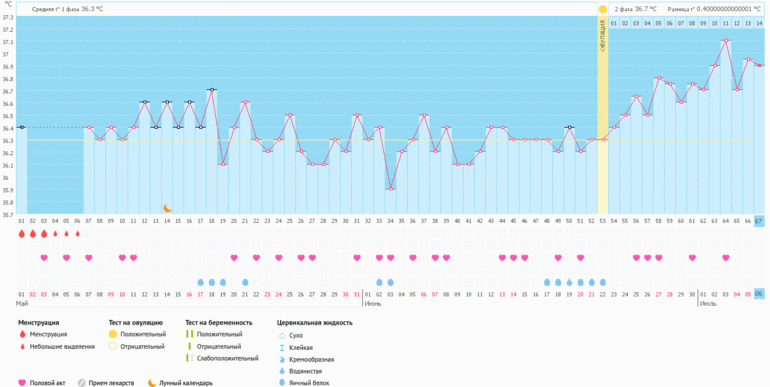 Всё боюсь, что либо график поставил овуляцию раньше, чем она произошла и вот-вот наступит менструация, ну или, что-нибудь в этом роде... (( И температура плавно пошла вниз. Ой, голова кругом.