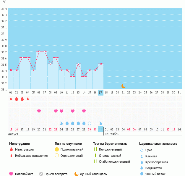 Я считаю что О была у вас на 16 ДЦ. Небольшой подъем на 13 ДЦ не портит картину. Нижняя температура 36.4 на мой взгляд. Есть множество методов. Почитайте о них. Так вот у вас пока что вписывается в Правило Биллингса и Правило Роджера. Это правило 4 высоких температур. В первом методе ожидается 3 высоких Т из 4х , они должны быть выше НУТ (нижний уровень температур) на 0.05. Одна из 4 температур должна быть выше НУТ на 0.2. Ваш НУТ 36.4. И У ВАС УЖЕ ЕСТЬ ПЕРВАЯ ВЫСОКАЯ Т даже больше чем 0.05 . У вас 0.1 Если последующие Т подойдут под это правило то ваша плодородной фаза закончилась на 17 ДЦ а соответственно О была до этого. Т.е 16. Второй метод предполагает 3 высокие Т. Первые две не менее 0.1 выше НУТ. ТРЕТЬЯ НА 0.2 ВЫШЕ НУТ. Пока что эти два метода для вашего цикла подходят. И он вовсе не ановуляторный. Не хоронить его раньше срока. Тут на ББ ссылаются толькл на один метод - Т должна "подскочить" на 0.2 градуса и значит О. Это не так. Методов куча. Почитайте о них :) Удачи