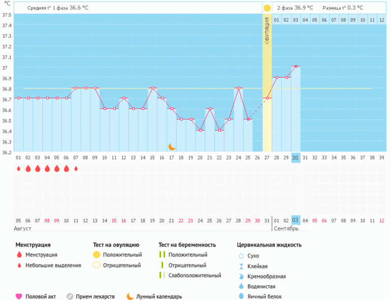 Мой график базальной температуры от 5 августа 2015
